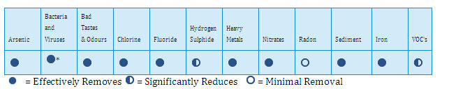 Reverse osmosis, also known as hyper-filtration, is the finest filtration available today. It is effective in eliminating or substantially reducing a very wide array of contaminants and salts. Reverse osmosis will allow the removal of particles as small as individual ions. The pores in a reverse osmosis membrane are only approximately 0.0005 micron in size (bacteria are 0.2 to 1 micron & viruses are 0.02 to 0.4 microns).